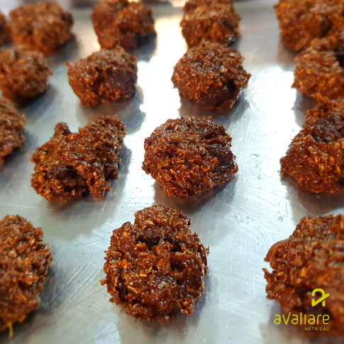 - 2 Xícaras de Aveia em flocos médios (pode ser utilizada a farinha gordurosa como de linhaça, amêndoas, amendoim...)